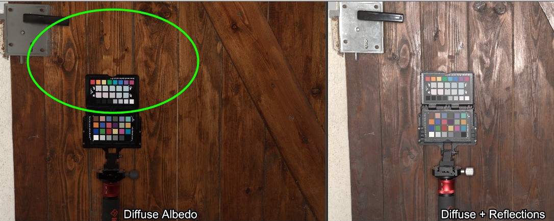 Being close to giving up I made another attempt at finding a source for polarised reference values and luckily found an old article from activision: Real-World Measurements for Call of Duty: Advanced Warfare. The whole PDF is a treasure trove in itself but what really sparked joy here was that their method of capturing textures was very close to mine - with one important difference: They use "spectralon", a material that has an albedo of over 99% and being very close to Lambertian reflectance. With that, they have a very reliable reference and all they do is adjust the exposure of the linear image to match the spectralon surface to pure white.