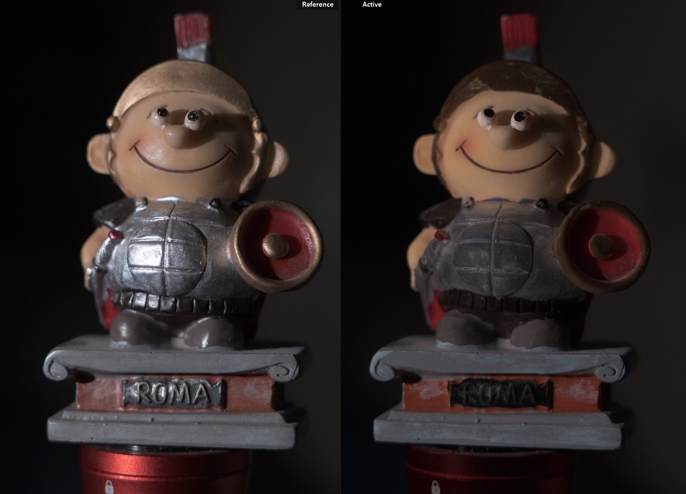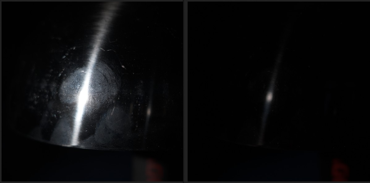 I will not go into the details of cross-polarization here, I will assume that readers of an article like this one are already familiar with it, but as a quick reminder: cross polarization means you are polarizing the light at the source and add another polarizer in front of the lens to block everything that comes from that light. This will effectively neutralize all specular reflections off of an object while letting the diffuse "basecolor" part through. That's because diffuse reflection happens inside the object and the polarized light reaching it will get de-polarized in the process. When it is then re-emitted from the object and travels through the lens, the filter can't block it and the camera records it.