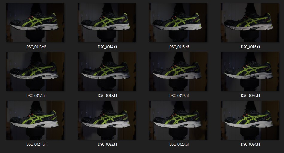 If you have done any photogrammetry, you know that sharpness is paramount. You don't want motion blur, you don't want blurry images. With photometric stereo, this gets a lot worse: every single image for one camera angle has to be a pixel perfect match to the last one. If the camera moves even so much as a pixel, you will see it once you calculate your normals or subtract the diffuse and reflection passes.