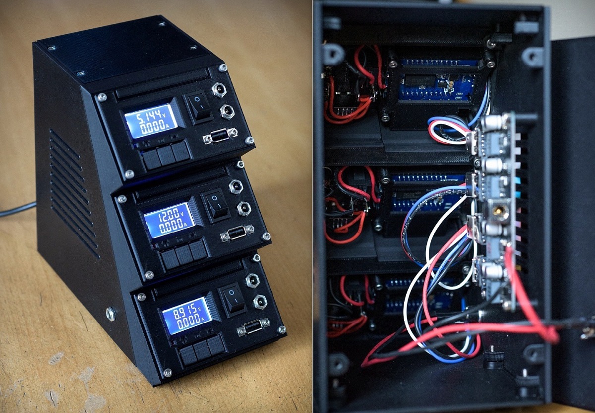 I regularly use different voltages for different devices on my desk. Having 3 or more differnt switch-mode power supplies laying around is not great and uses up a lot of space, so I wanted a bench power supply that can deliver different voltages and has multiple outputs for each voltage.
