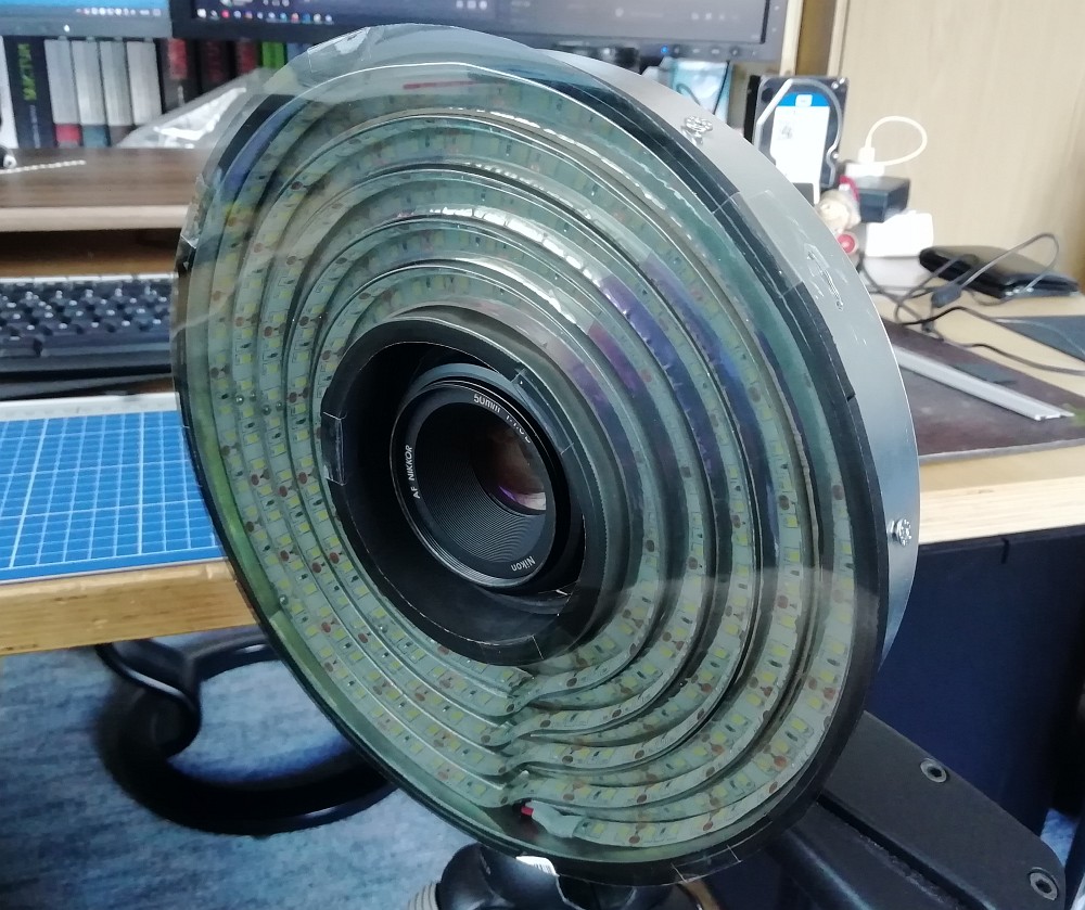 For my turntable photogrammetry projects I wanted a bright, compact, and cross-polarizable light source. Since professional ring lights at that power level are almost always flashes (or extremely pricey, or big) I decided to make my own. A flash ring light would have been easy to find and to use but considering that this would have to trigger a few hundred times with a delay of a few seconds in between... mhhh... nope, I'd rather not. Also, fine tuning the angle between polarisation filters with a flash isn't that much fun either. So, permanent light it was.